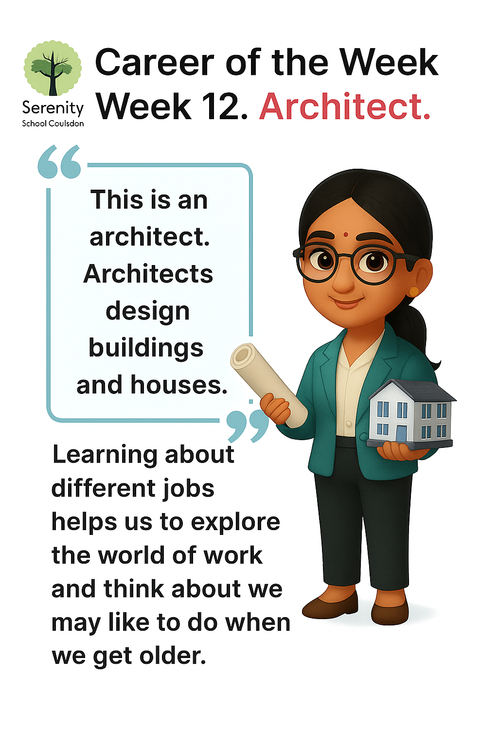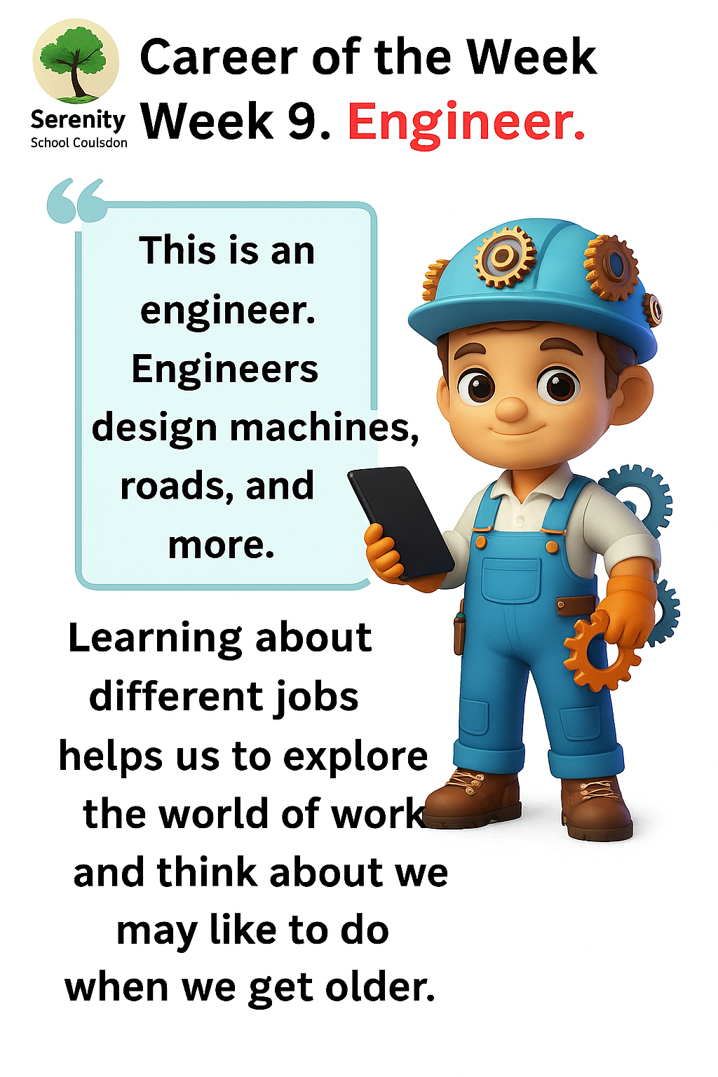 In order to help our students connect with the world beyond Serenity School, we will be introducing a Career of the Week every Friday as part of our commitment to the Careers Education, Information, Advice and Guidance (CEIAG) framework.